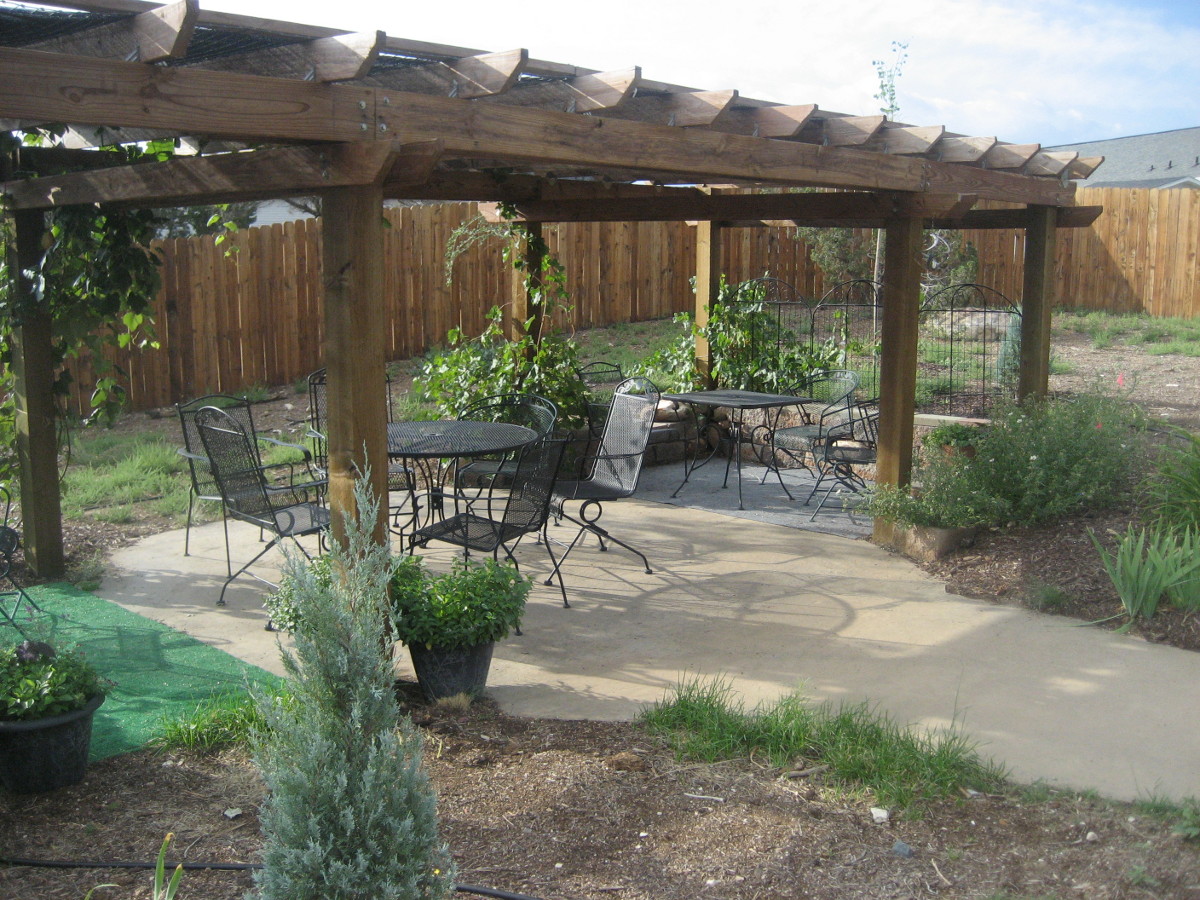 outdoor garden area with an Arbor for shade